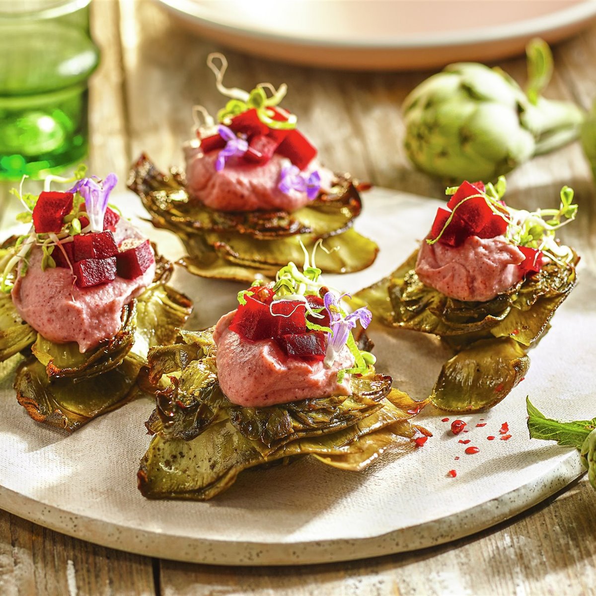 Las flores de alcachofa con jamón son una preparación muy ligada a la cocina tradicional española, especialmente a las zonas del Levante (Valencia y Murcia), Andalucía y Navarra, donde la alcachofa es un producto estrella de la huerta.
