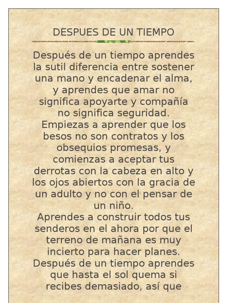 La confusión ha llevado a muchas personas a creer que fue escrito por Borges, probablemente porque su estilo reflexivo y maduro se alinea con el tono del poemaAunque no sea un texto de Borges, «Después de un tiempo» es un poema profundamente humano que dialoga con temas universales. Vida y poesía aquí son una sola cosa: la experiencia vital transformada en palabra que consuela, enseña y acompaña.