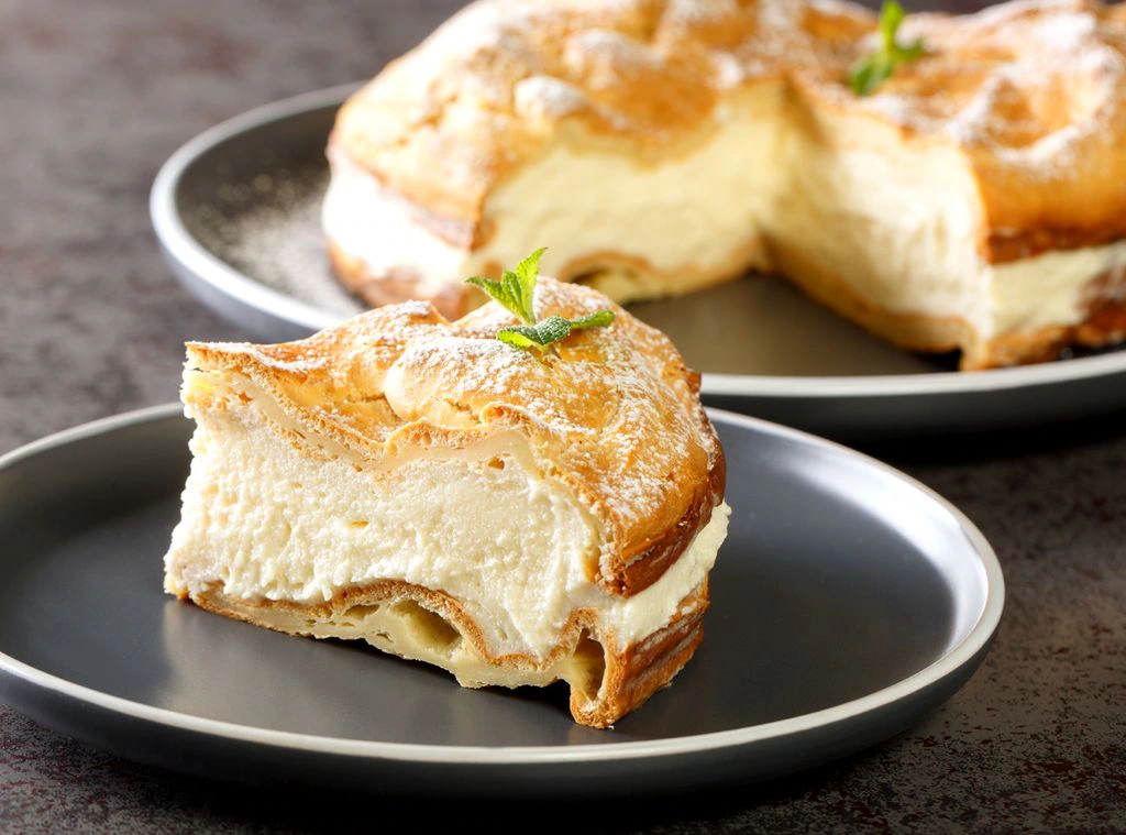 La karpatka está estrechamente relacionada con la masa choux (la misma del éclair o el profiterol), que llegó a Europa Central desde la tradición pastelera francesa. En Polonia, esta masa se adaptó a un formato más casero y rústico: dos capas horneadas rellenas de una generosa crema pastelera.