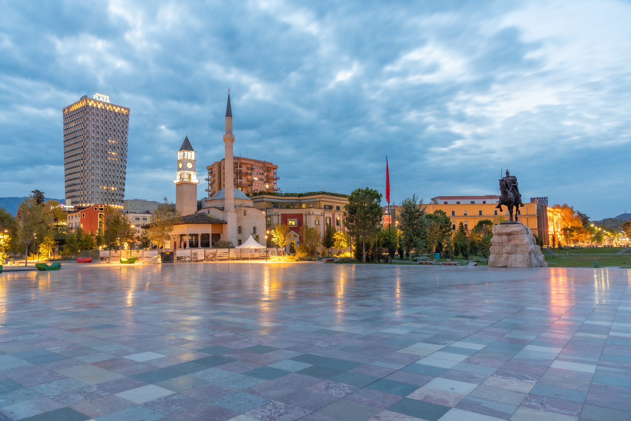 Plaza Skanderbeg: corazón de la ciudad; aquí se concentran museos y edificios clave.
