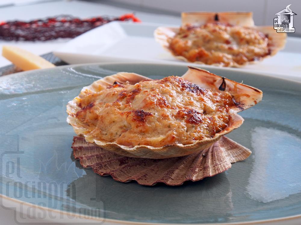 Las vieiras a la gallega son una receta tradicional de la cocina de Galicia (España), especialmente típica en celebraciones y fiestas. Se preparan generalmente al horno con una base de sofrito, pan rallado y un toque de vino blanco, resaltando el sabor delicado de la vieira.