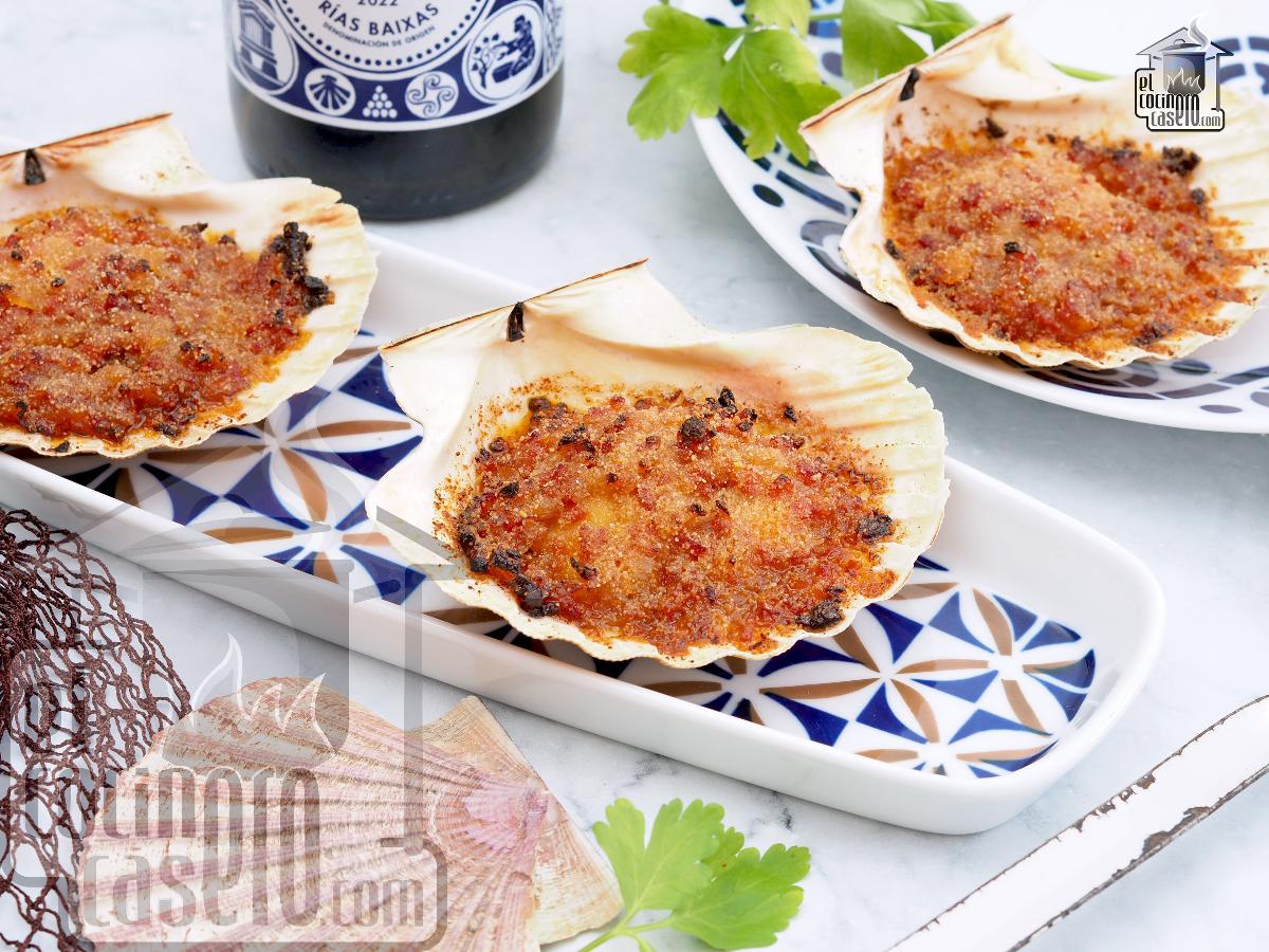 Aquí tienes una receta clásica de vieiras a la gallega